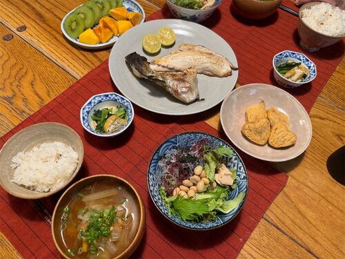 ☆当ブログはアフィリエイト広告を利用しています 好きな魚やさんで、 カンパチカマが290円であったので、 塩を振って焼く 冷凍のすだち活躍中 ハートとダイヤ形のさつま揚げ 豆入りのサラダと果物と共に 休肝日の食事は粗食に粗食にしたい でも痩せない カマ…
