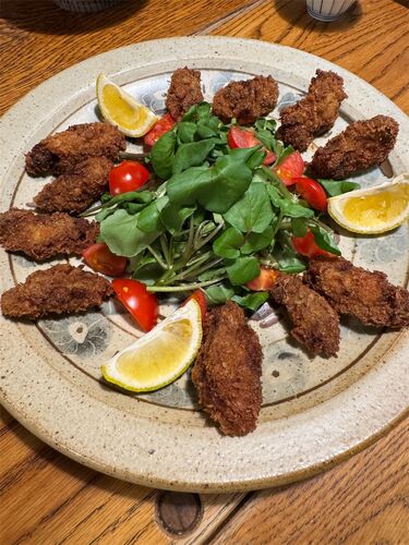 ☆プロモーションが含まれることがあります 今シーズンまだ一度も食べてない牡蠣 先週末広島産の加熱用の牡蠣を 魚屋さんで見つけて購入 バッター液は隊長が作り 私は牡蠣を塩水で洗って 水分をしっかりふき取って バッター液からパン粉をつける 大粒1個、中…