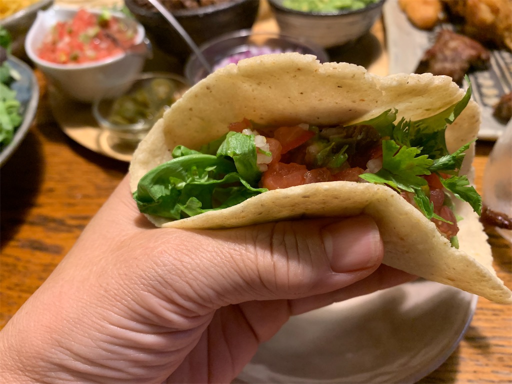 父の日の前夜に、娘が帰ってきたので、娘の時は毎度手巻き寿司と決まってましたが、娘に父が焼くトルティーヤを食べさせたくて、メキシカンにしました。