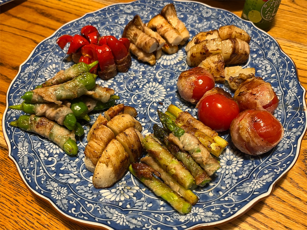 薄ーいしゃぶしゃぶ用のばら肉があると、野菜室にある野菜を片っ端から巻くのは、今も相変わらずです。